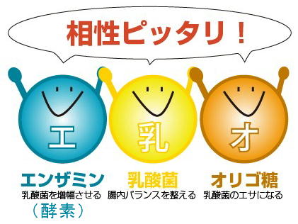 善玉菌である乳酸菌を増やし、悪玉菌を減らして、バランスを整えます。